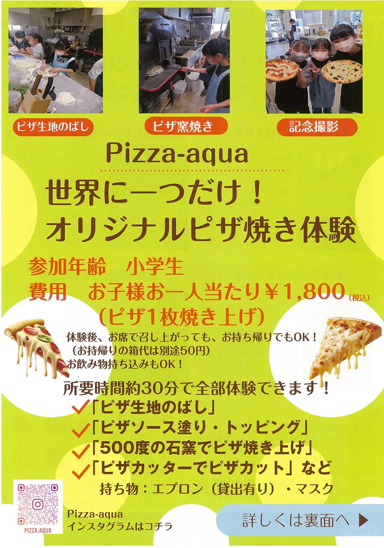 小学生対象にしたピザ焼きを、店舗にて実際に体験できます。以下、チラシをご参考ください。 事前に、申込があった日にちに、開催します。希望される方は、準備もありますので、少なくとも1週間くらい前までにお申し込みください。 夕 …